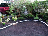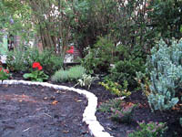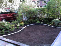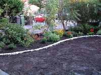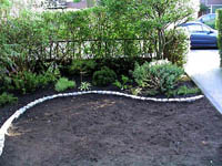 The shape of the lawn was changed from 2 straight edges to a curvy line which also increased the size of the beds in the corner to something more useable. Previously the grass in those corners had been unable to grow very well as the trees provided too much shade and stole all the moisture. Hopefully the new arrangement will work well.